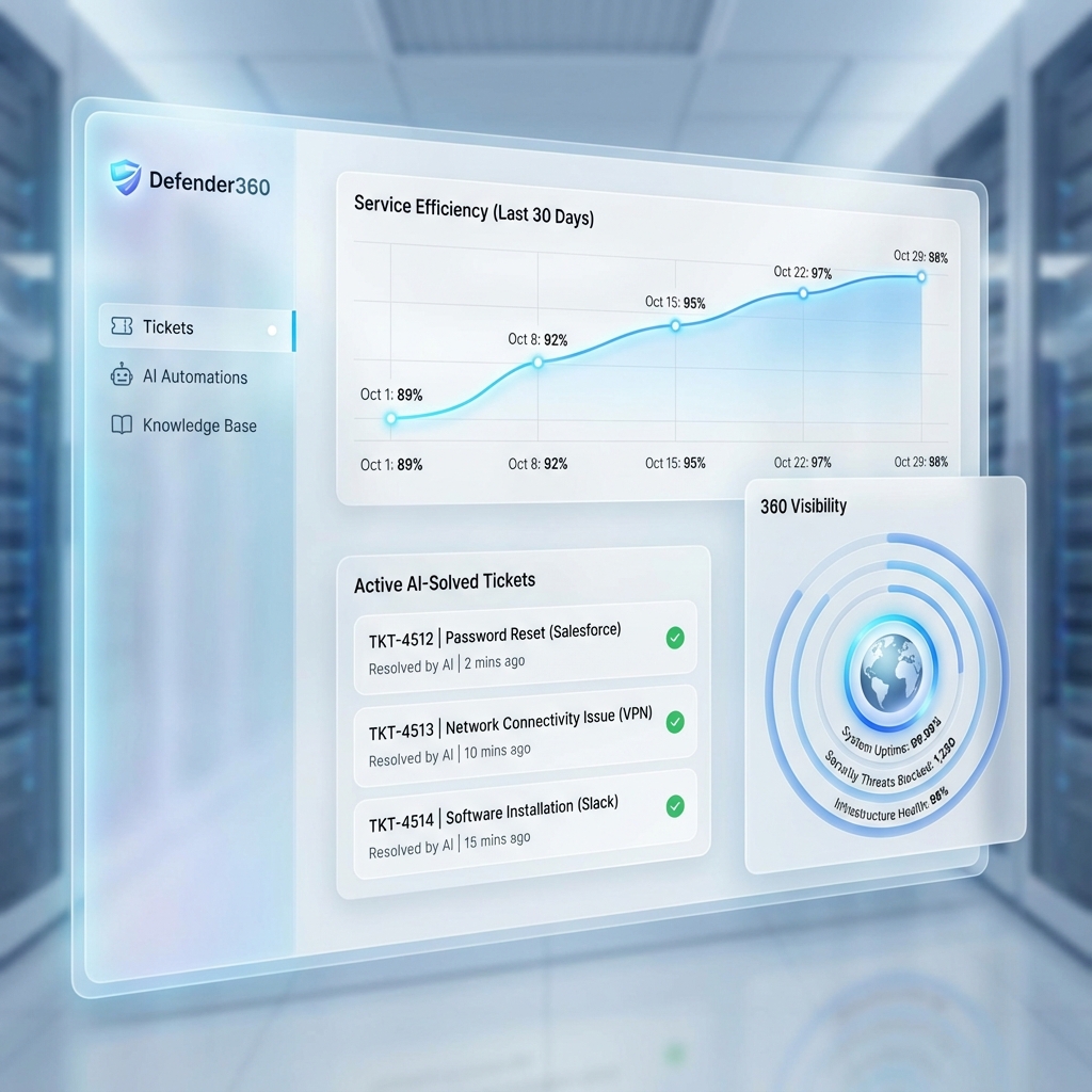 O Defender360 é a plataforma ITSM completa que unifica gestão de chamados, automação inteligente com IA, base de conhecimento e integrações. Reduza custos em até 40% e tenha visibilidade 360º da sua operação.